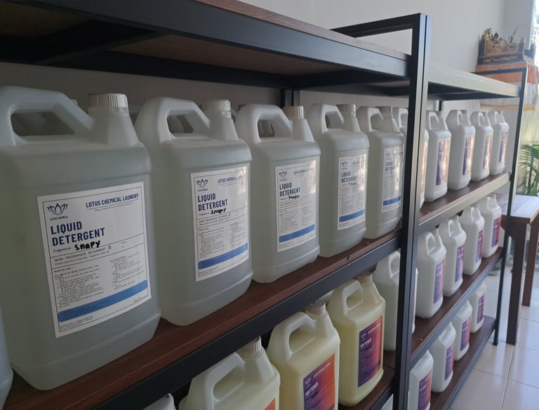 Lotus Chemical adalah perusahaan penyedia bahan kimia laundry profesional yang ramah lingkungan. Kami fokus pada produk berkualitas tinggi untuk kebutuhan laundry komersial seperti hotel, spa, dan laundry industri.
